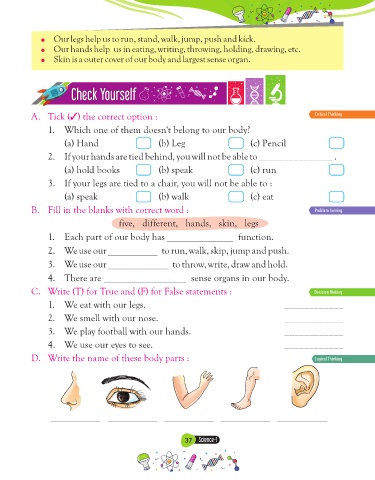 ! Our legs help us to run, stand, walk, jump, push and kick.