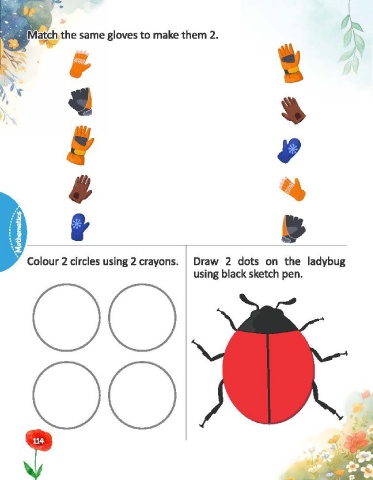 • , 4l ,, t Colour 2 circles using 2 crayons. Draw 2 dots on the ladybug using black sketch pen.