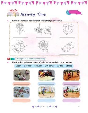 • Write the name and colour the flowers that given below :