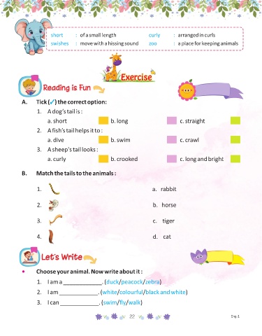 B. Match the tails to the animals :