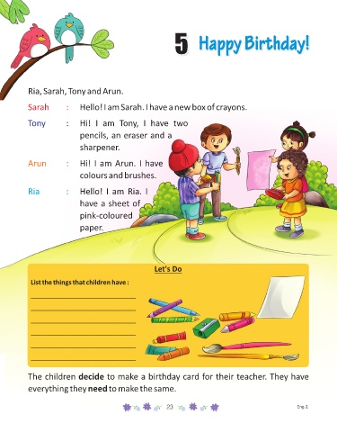 Sarah : Hello! I am Sarah. I have a new box of crayons.