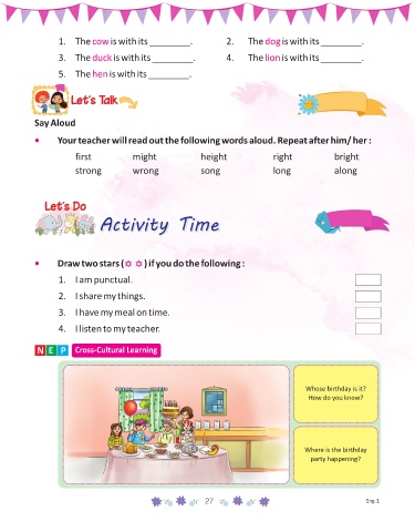 • Your teacher will read out the following words aloud. Repeat after him/ her :