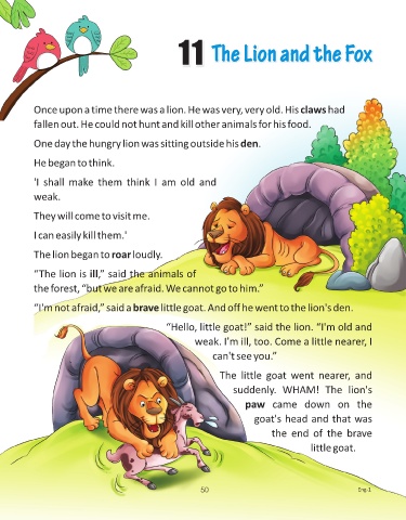 “I'm not afraid,” said a brave little goat. And off he went to the lion's den.