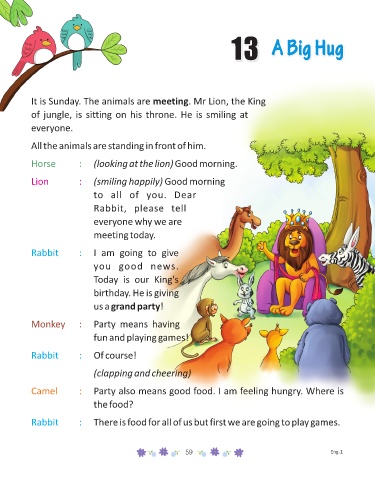 It is Sunday. The animals are meeting. Mr Lion, the King