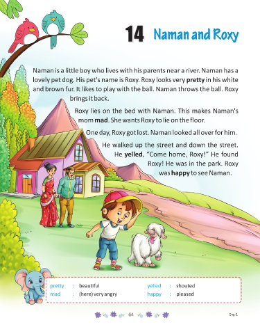 and brown fur. It likes to play with the ball. Naman throws the ball. Roxy
