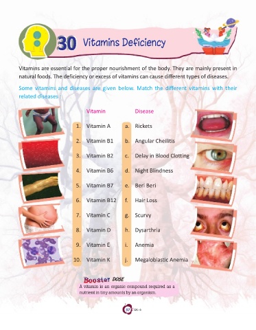 Some vitamins and diseases are given below. Match the different vitamins with their