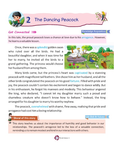 In this tale, the proud peacock loses a chance at love due to his arrogance . However,