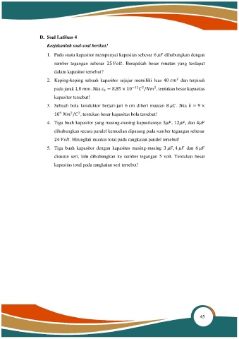 2. Keping-keping sebuah kapasitor sejajar memiliki luas 40 dan terpisah