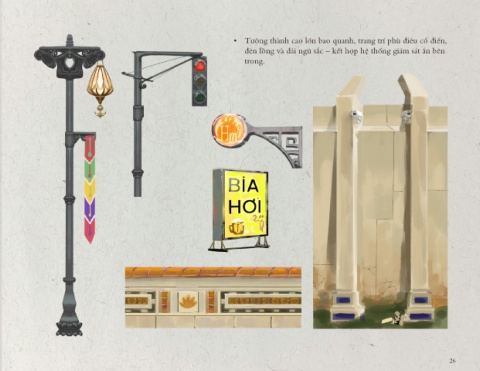 • Tường thành cao lớn bao quanh, trang trí phù điêu cổ điển, đèn lồng và dải ngũ sắc – kết hợp hệ thống giám sát ẩn bên trong. 26