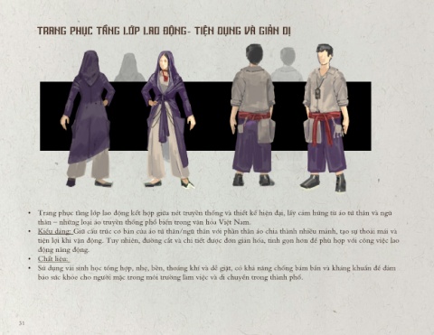 • Trang phục tầng lớp lao động kết hợp giữa nét truyền thống và thiết kế hiện đại, lấy cảm hứng từ áo tứ thân và ngũ