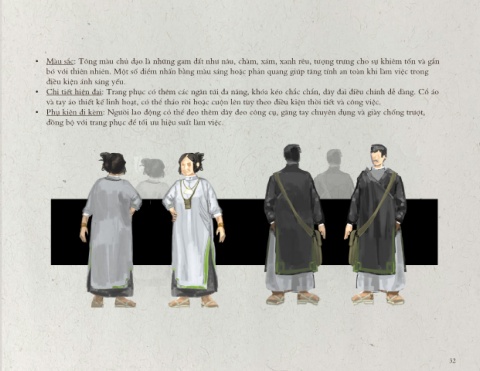 bó với thiên nhiên. Một số điểm nhấn bằng màu sáng hoặc phản quang giúp tăng tính an toàn khi làm việc trong