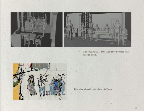 quá trình lên ý tưởng và cảm hứng về TOản • Bản phác họa 3D trên Blender về phòng chơi bài của Toản. • Bản phác đầu tiên của nhân vật Toản. 62 62