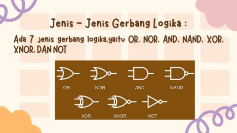Jenis - Jenis Gerbang Logika : Jenis - Jenis Gerbang Logika : Ada 7 jenis gerbang logika,yaitu OR, NOR, AND, NAND, XOR, Ada 7 jenis gerbang logika,yaitu OR, NOR, AND, NAND, XOR, XNOR, DAN NOT XNOR, DAN NOT