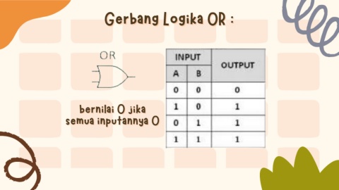 Gerbang Logika OR : Gerbang Logika OR : bernilai 0 jika bernilai 0 jika semua inputannya 0 semua inputannya 0
