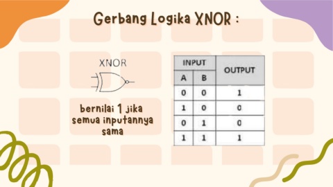 Gerbang Logika XNOR : Gerbang Logika XNOR : bernilai 1 jika bernilai 1 jika semua inputannya semua inputannya sama sama