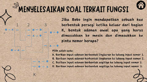 D. Berikan input adonan berbentuk segitiga ke lubang input nomor 3.