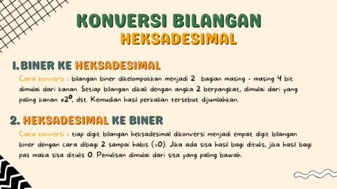 Cara konversi : bilangan biner dikelompokkan menjadi 2 bagian masing - masing 4 bit