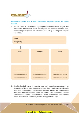 tuliskanlah pokok pikiran atau ide cerita pada setiap bagian pada diagram