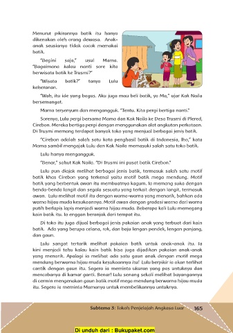 “Benar,” sahut Kak Naila. “Di Trusmi ini pusat batik Cirebon.”