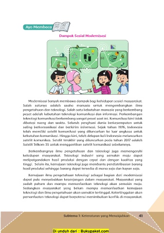 Modernisasi banyak membawa dampak bagi kehidupan sosial masyarakat.
