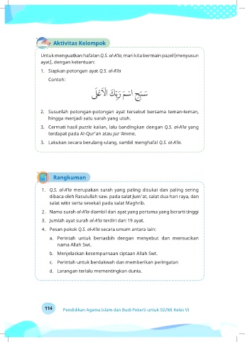 3. Cermati hasil puzzle kalian, lalu bandingkan dengan Q.S. al-A’la yang