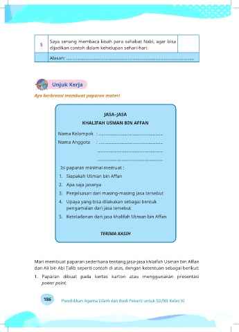 186 Pendidikan Agama Islam dan Budi Pekerti untuk SD/MI Kelas VI