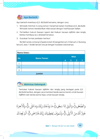 1. Mintalah minimal 3 orang teman menyimak kalian membaca Q.S. Aḍ-Ḍuḥā.
