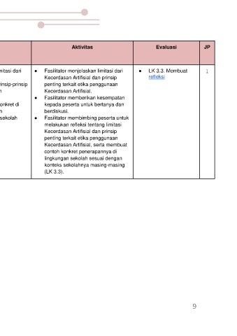 Merefleksi   ●   Peserta mampu mengidentifikasi limitasi dari   ●   Fasilitator menjelaskan limitasi dari   ●   LK 3.3. Membuat   1