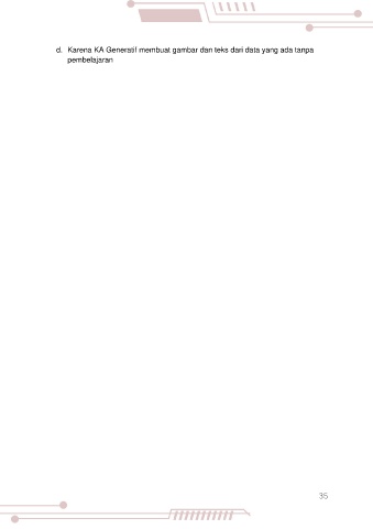 d. Karena KA Generatif membuat gambar dan teks dari data yang ada tanpa pembelajaran 35