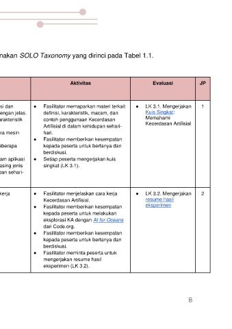 Alur pelatihan modul Konsep Dasar Kecerdasan Artifisial menggunakan SOLO Taxonomy yang dirinci pada Tabel 1.1.