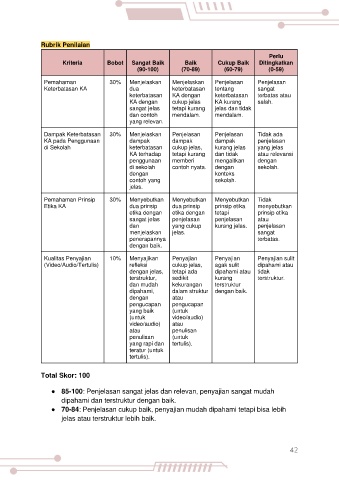 ● 85-100: Penjelasan sangat jelas dan relevan, penyajian sangat mudah
