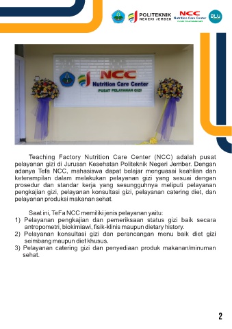 Teaching Factory Nutrition Care Center (NCC) adalah pusat