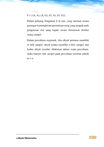 Dalam peluang, himpunan S di atas, yang memuat semua