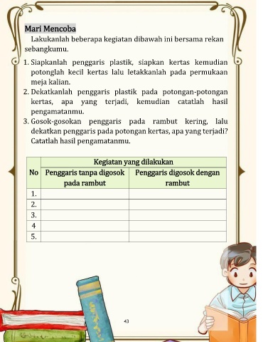 dekatkan penggaris pada potongan kertas, apa yang terjadi?