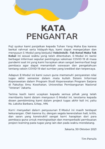 menyusun E-Modul yang berjudul VaksinAsik : Tak Kenal Maka Tak