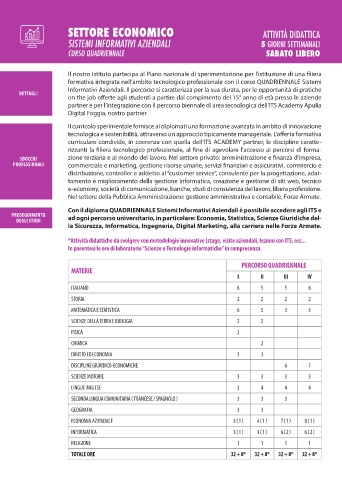 formativa integrata nell’ambito tecnologico professionale con il corso QUADRIENNALE Sistemi