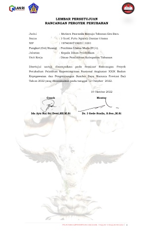 Judul : Mutiara Pancasila Menuju Tabanan Era Baru