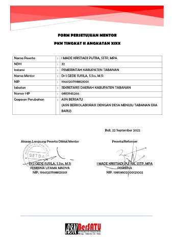 Nama Mentor : Dr I GEDE SUSILA, S.Sos, M.Si