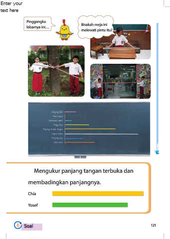 Pinggangku lebarnya ini… Bisakah meja ini melewati pintu itu? Aktifitas Mengukur panjang tangan terbuka dan membadingkan panjangnya. Chia Yosef 121