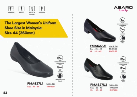 The Largest Women’s Uniform Shoe Size in Malaysia: Size 44 (260mm) 52