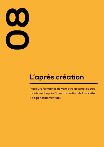 36 08 L’après création Plusieurs formalités doivent être accomplies très rapidement après l’immatriculation de la société. Il s’agit notamment de :