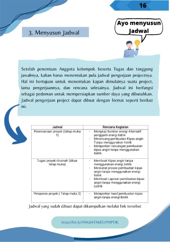 jawabnya, kalian harus menentukan pula jadwal pengerjaan projectnya.