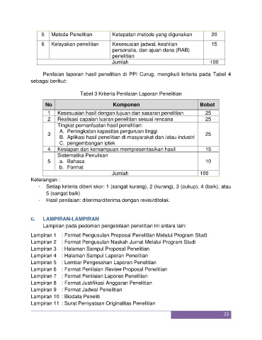 Tabel 3 Kriteria Penilaian Laporan Penelitian