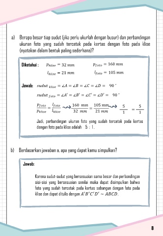 a) Berapa besar tiap sudut (jika perlu ukurlah dengan busur) dan perbandingan