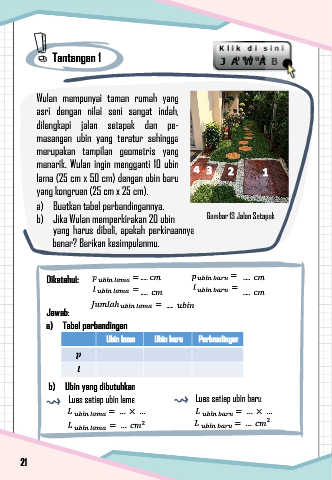 b) Jika Wulan memperkirakan 20 ubin Gambar 13 Jalan Setapak