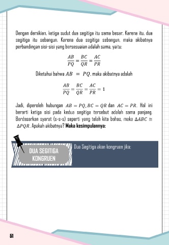 Berdasarkan syarat (s-s-s) seperti yang telah kita bahas, maka Δ ≅
