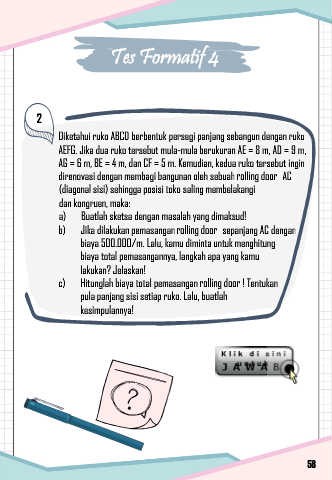 AG = 6 m, BE = 4 m, dan CF = 5 m. Kemudian, kedua ruko tersebut ingin