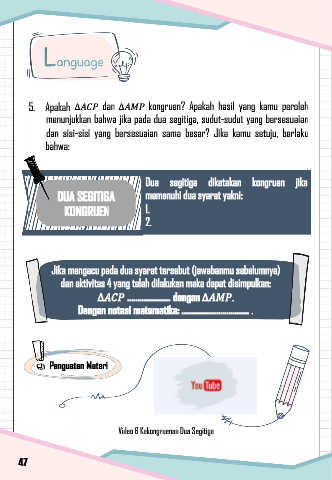 5. Apakah ∆       dan ∆       kongruen? Apakah hasil yang kamu peroleh