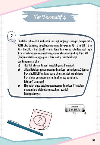 AG = 6 m, BE = 4 m, dan CF = 5 m. Kemudian, kedua ruko tersebut ingin