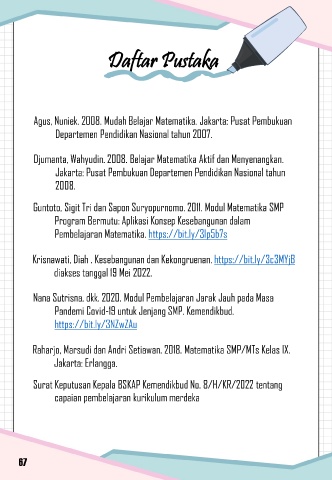 Agus, Nuniek. 2008. Mudah Belajar Matematika. Jakarta: Pusat Pembukuan